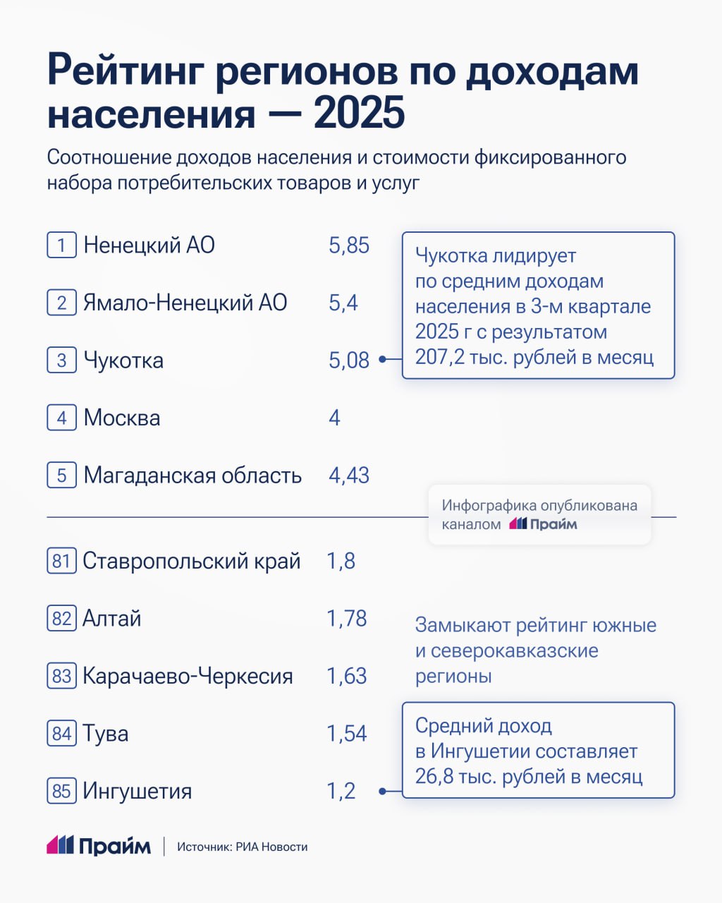 НАО, ЯНАО И Чукотка возглавили рейтинг по уровню доходов среди населения