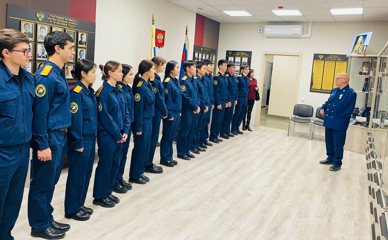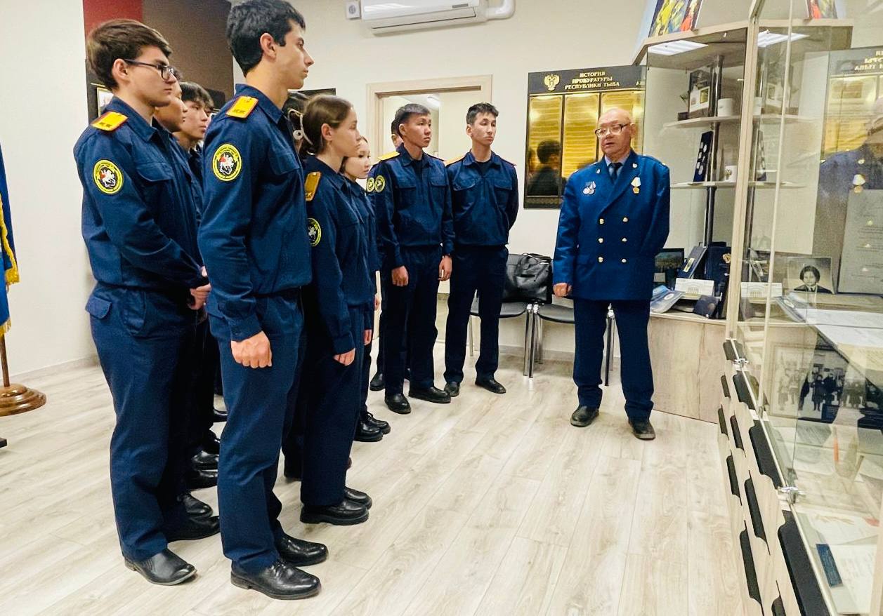 В рамках подготовки к празднованию 90-летия прокуратуры Республики Тыва сотрудники отдела кадров и председатель Тувинского регионального отделения Совета ветеранов и пенсионеров Юрий Бридненко организовали экскурсию в музей прокуратуры республики, а также прочитали лекцию для учащихся 11 класса МБОУ СОШ № 1 имени М.А. Бухтуева (кадетского класса Следственного комитета) на тему: «90 лет прокуратуре Республики Тыва».