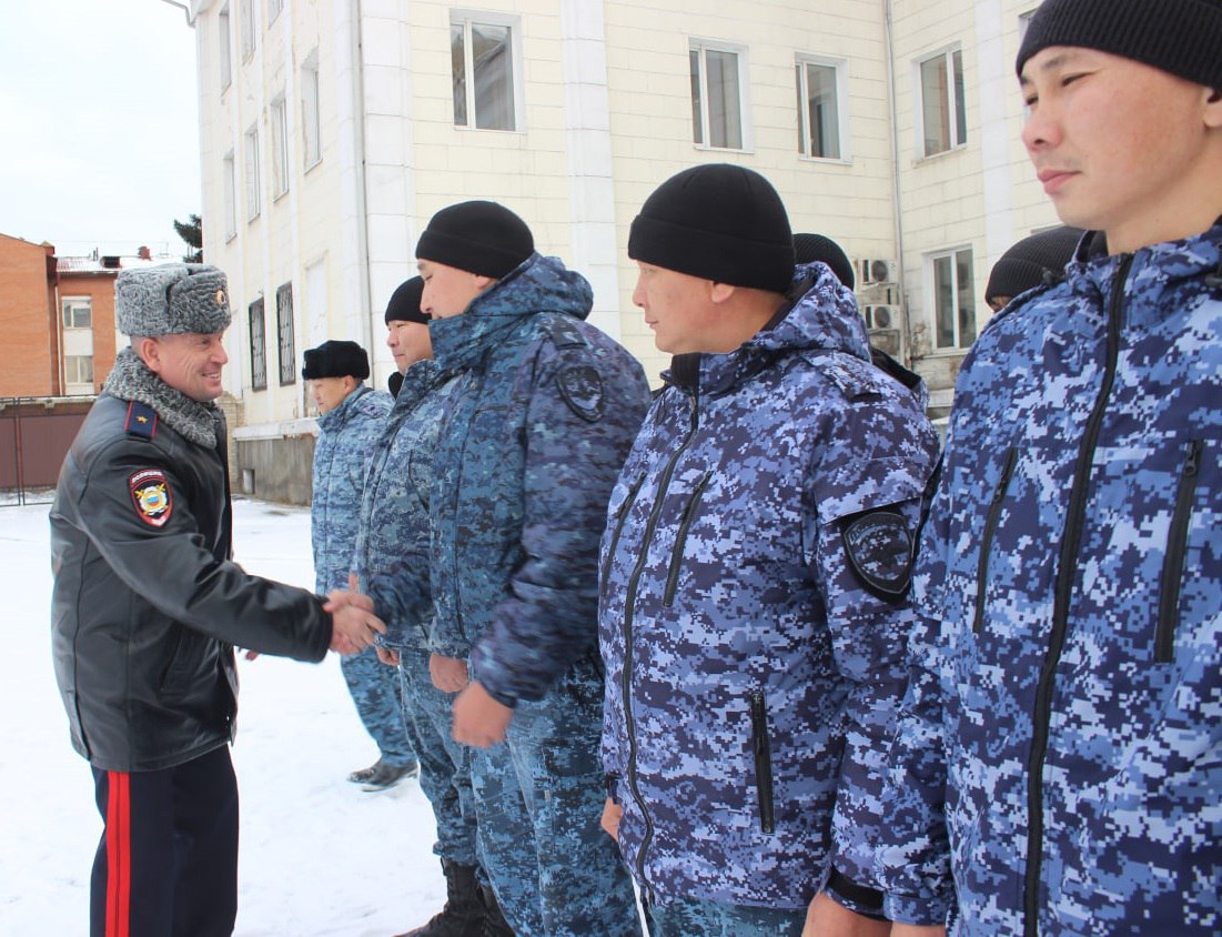 В МВД по Республике Тыва встретили сводный отряд полиции, вернувшийся из Чеченской Республики