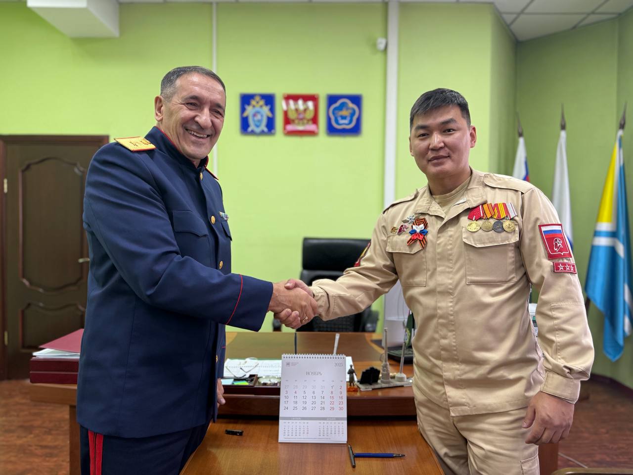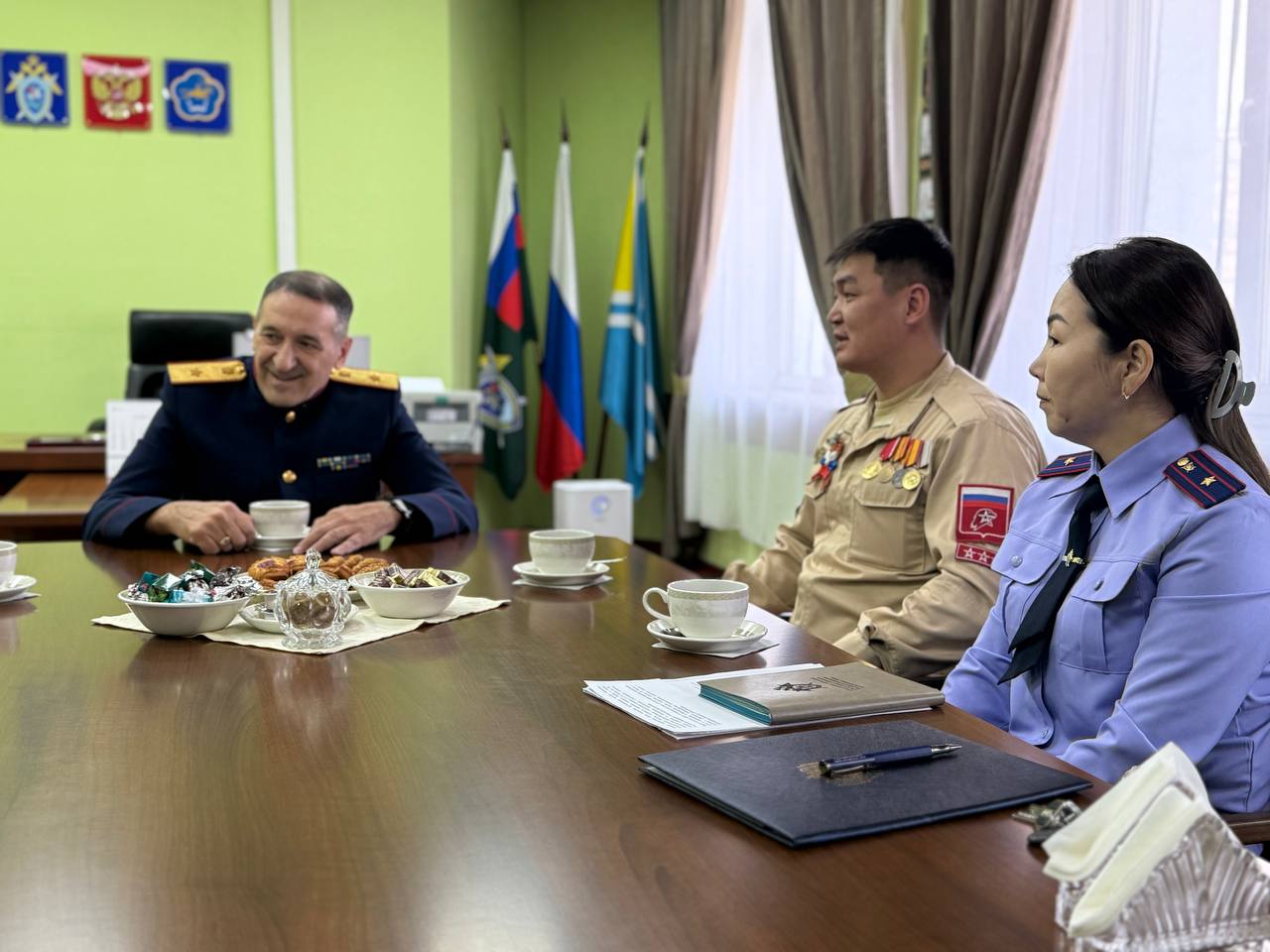 В ходе встречи руководитель следственного управления Константин Владимирович Столбин и начальник регионального отделения ВВПОД «Юнармия» Айдын Юрьевич Шивидек обсудили направления совместной деятельности,направленной на развитие патриотического воспитания детей, подростков и молодежи, уважение к истории и военно-патриотическим традициям России, популяризацию физической культуры и спорта, здорового образа жизни ипрофилактику противоправного поведения в среде несовершеннолетних.