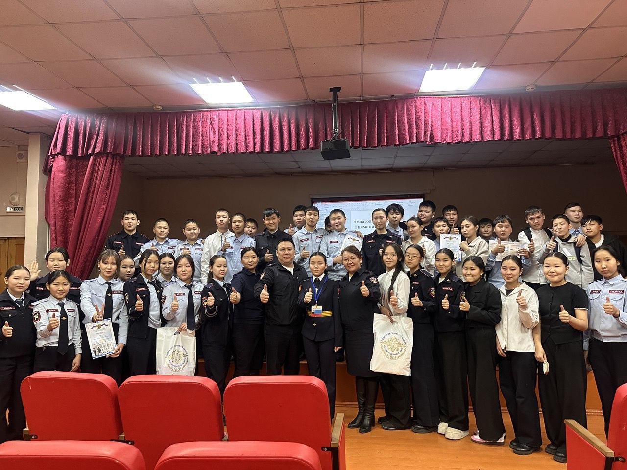 Еще одним интересным моментом во время мероприятий стала встреча учащихся 8 классов МБОУ Гимназия №9 г. Кызыла с кадетом 8 класса Кызылского президентского кадетского училища Арияной Хорлуу, которая вместе с сотрудниками полиции провела интеллектуальную правовую игру, а также рассказала об учебе в училище. Лейтенант полиции Цевмек Ооржак рассказала ребятам об обязательном соблюдении правил дорожного движения и вручила им буклеты. Инспекторы ОПДН ОУУПиПДН УМВД России по г. Кызылу с коллегами оперуполномоченными, участковыми уполномоченными полиции посетили школы города с лекциями на темы: «Комендантский час, экстремизм, соблюдение мер безопасности в общественных местах и в быту, тайное хищение имущества, мелкое хищение, противоправные деяния по мошенничеству».