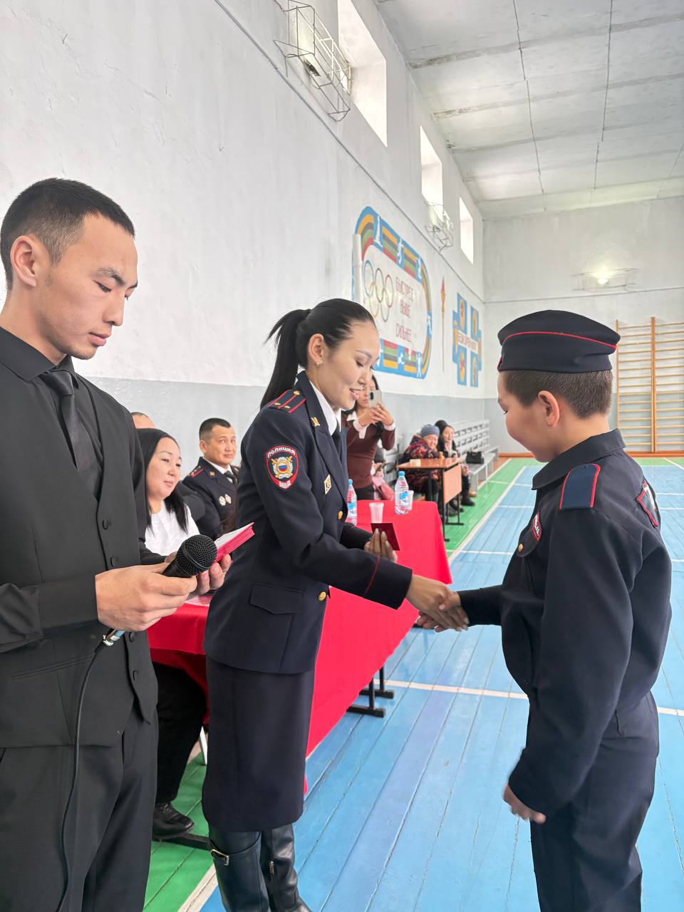 Начальник ОУУПиПДН МО МВД России «Дзун-Хемчикский» капитан полиции Менги Сарыглар и старший инспектор ПДН лейтенант полиции Кежикмаа Ондар приняли участие в торжественном мероприятии, которое прошло в школе села Хайыракан.