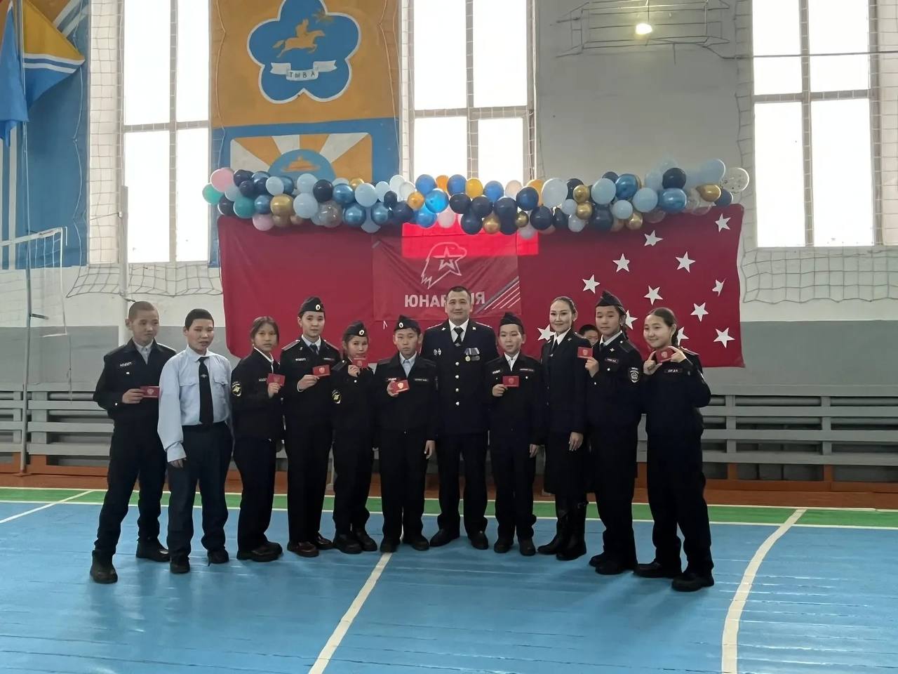 Учащиеся 6 и 7 классов торжественно произнесли клятву, обязывающую их стать настоящими патриотами и достойными гражданами своей страны, уважающими героическое прошлое России и свято чтить подвиг предков, защищавших её свободу и независимость. После произнесения клятвы ребятам были вручены удостоверения юнармейцев и юных друзей полиции.