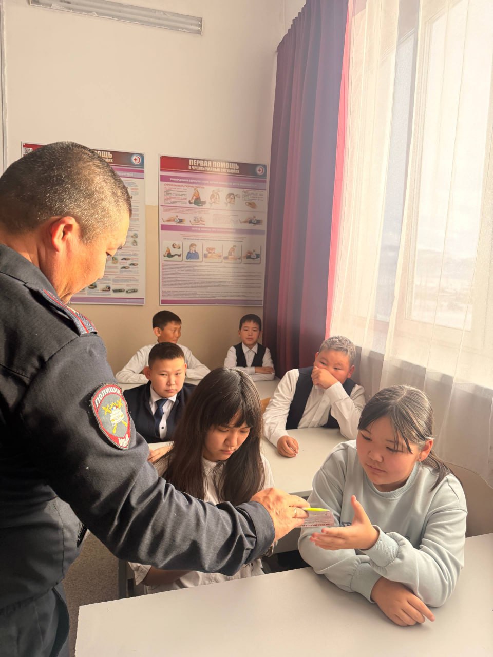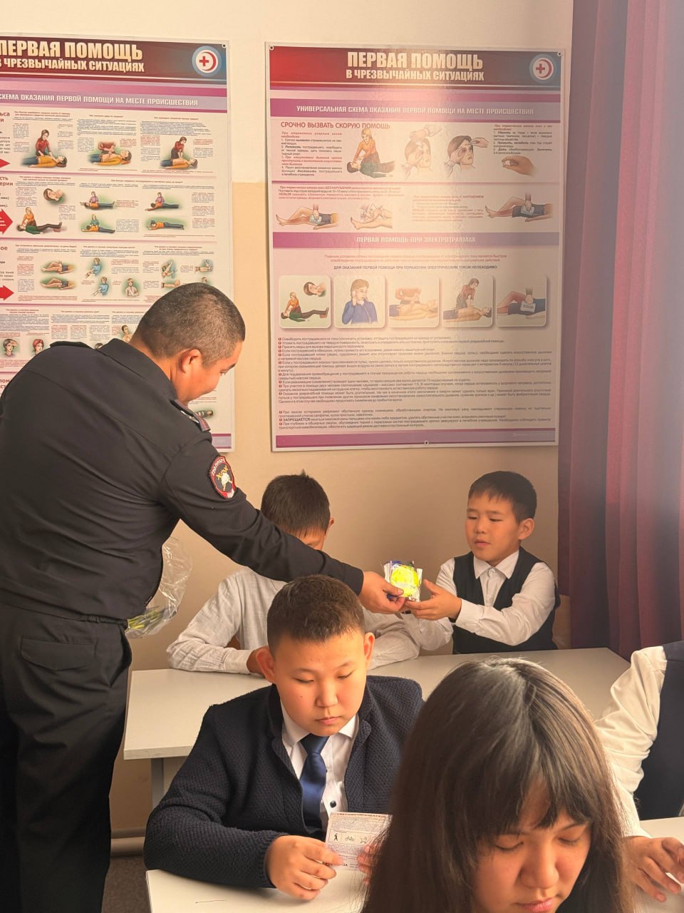 Сотрудники Госавтоинспекции организовали в Самагалтайской школе № 2 имени А.О. Монгуш просветительское занятие по безопасности дорожного движения для учащихся, с разъяснением необходимости применения световозвращающих элементов.