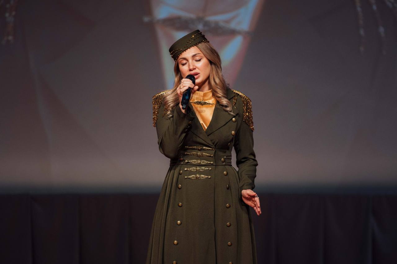 На церемонии закрытия финала VIII Всероссийского конкурса художественной самодеятельности СК России выступила победительница конкурса 2023 и 2024 годов Надежда Каргальская с авторской песней «Встанем».