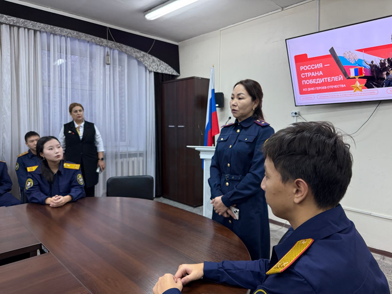 Сегодня помощник руководителя следственного управления СК России по Республике Тыва (по общественно-политической работе) Хуурак Ш.А., следователь отдела по расследованию особо важных дел Кечил Э.Н., инспектор отдела криминалистики Ондар Э.В. и следователь военного следственного отдела СК России по Абаканскому гарнизону Яковлев Г.Д. провели Урок Мужества в 10 и 11 профильных кадетских классах МБОУ СОШ № 1 города Кызыла имени Героя Советского Союза М.А. Бухтуева.