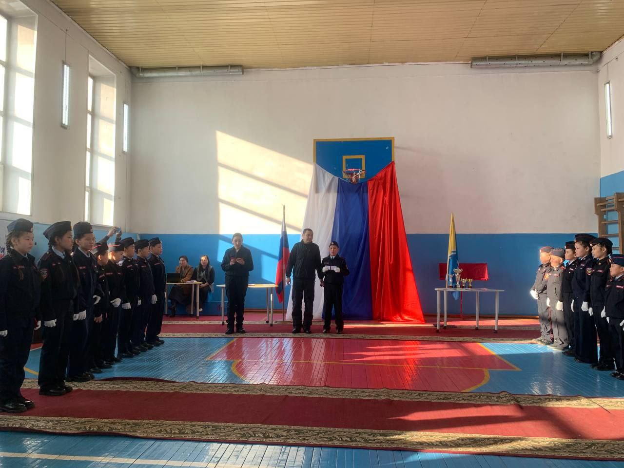 Мероприятие началось с торжественного построения учащихся. В своей приветственной речи лейтенант полиции Айбек Салчак рассказал о важности уважения к героическому прошлому России и о значении подвига предков, защищавших свободу и независимость страны. Майор полиции Маргарита Сырат подчеркнула, что вступление в ряды юных друзей полиции – шаг на пути к становлению будущих защитников правопорядка.
