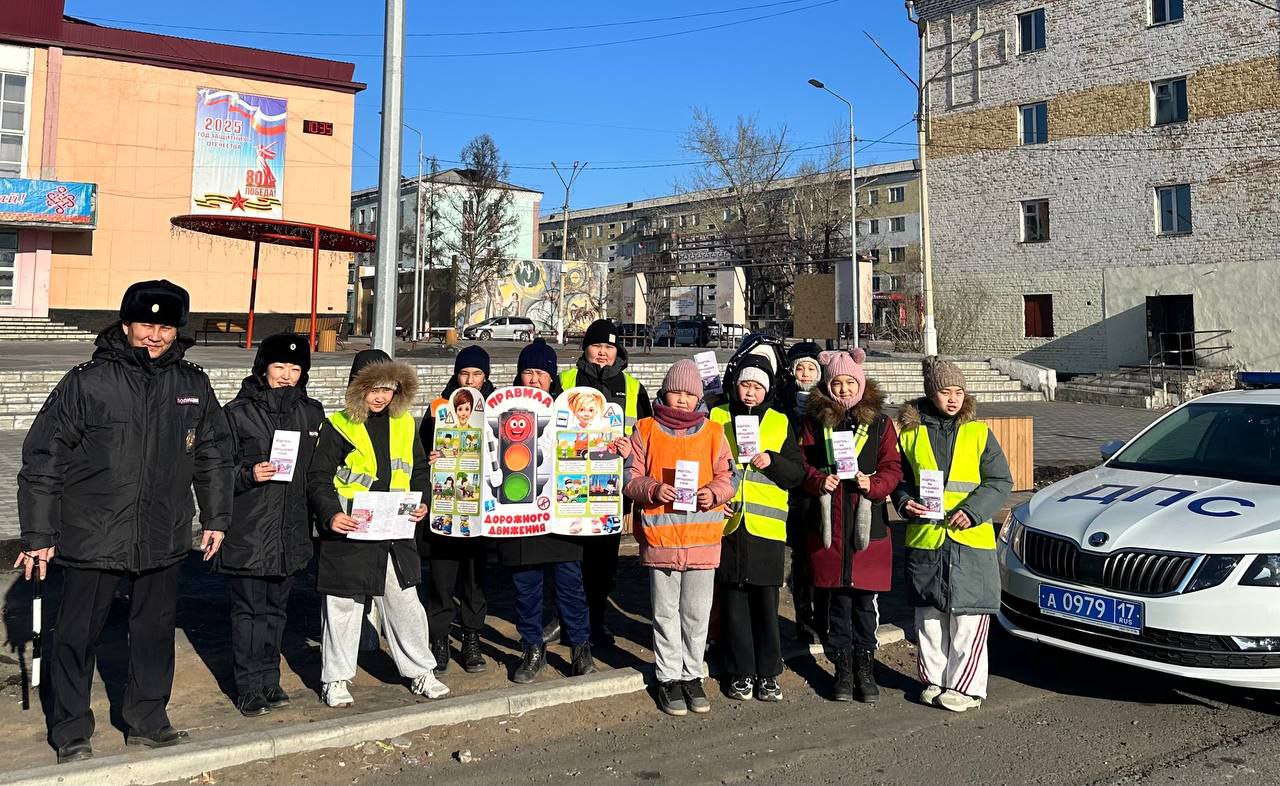 В преддверии Дня защитника Отечества сотрудники отделения Госавтоинспекции МО МВД России «Барун-Хемчикский» с юными помощниками в лице отряда ЮИД школы № 1 г. Ак-Довурака инициировали акцию, объединившую воспитание патриотизма и пропаганду безопасности дорожного движения.