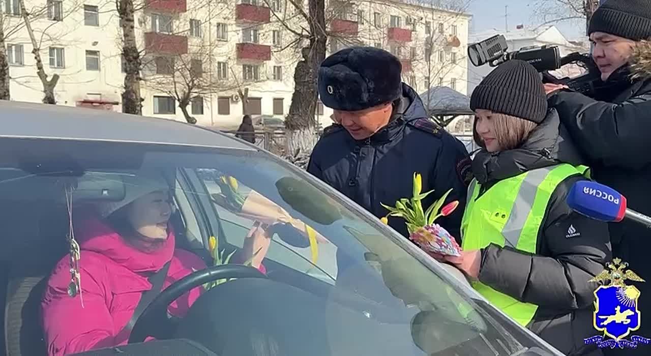 Не дожидаясь календарного праздника, госавтоинспекторы по доброй традиции поспешили разрядить оперативную обстановку на дорогах и инициировали полюбившуюся прекрасной половиной участников дорожного движения акцию к 8 Марта.
