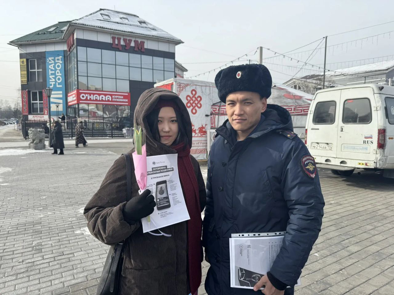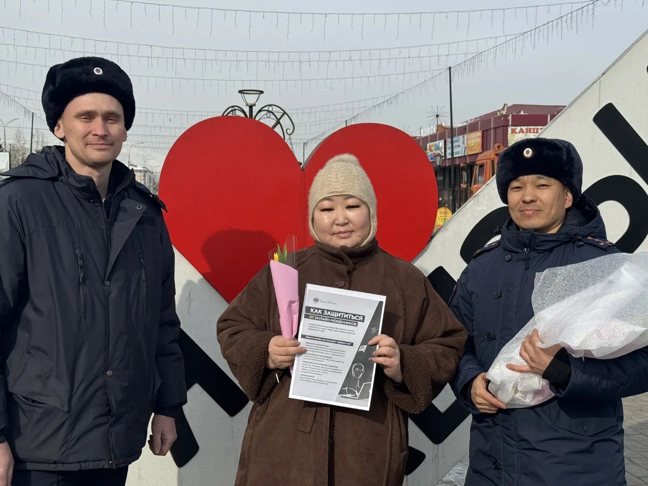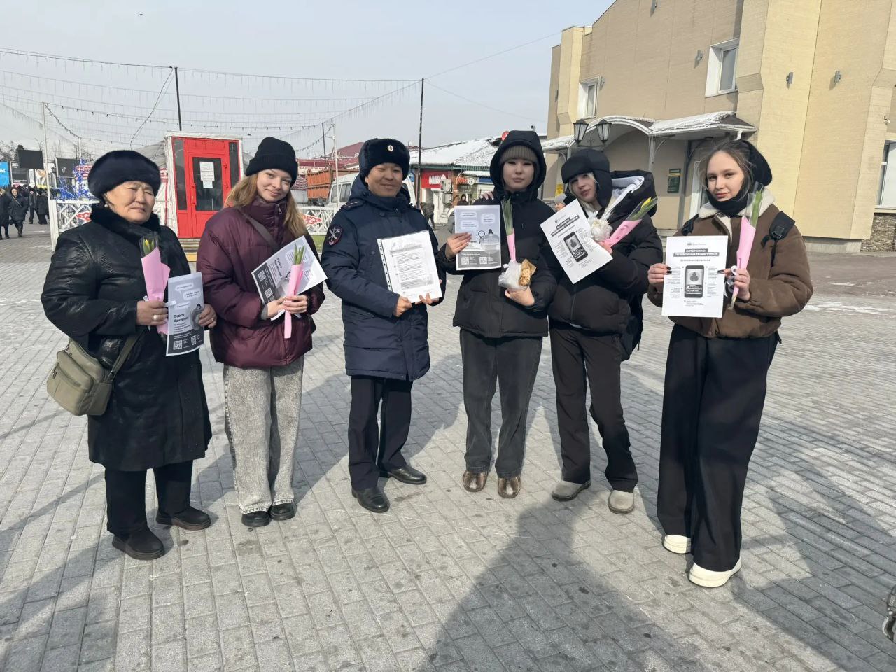 Каждой из женщин, принявших участие в акции, сотрудники вручили не только весенний тюльпан, но и тематические памятки. Листовки содержали актуальные советы и алгоритмы действий, как не попасться на уловки телефонных и интернет-мошенников.