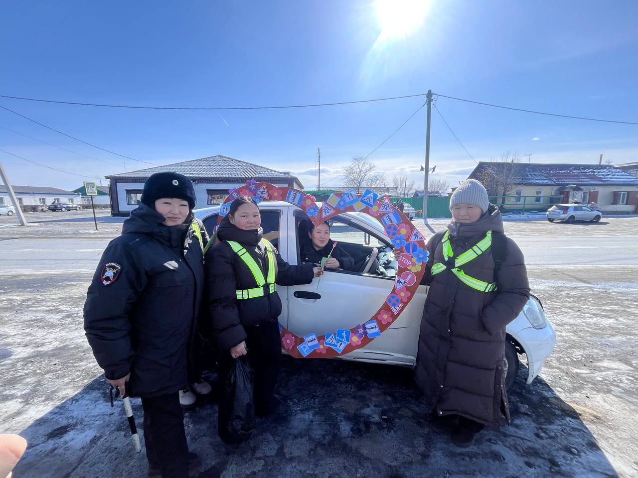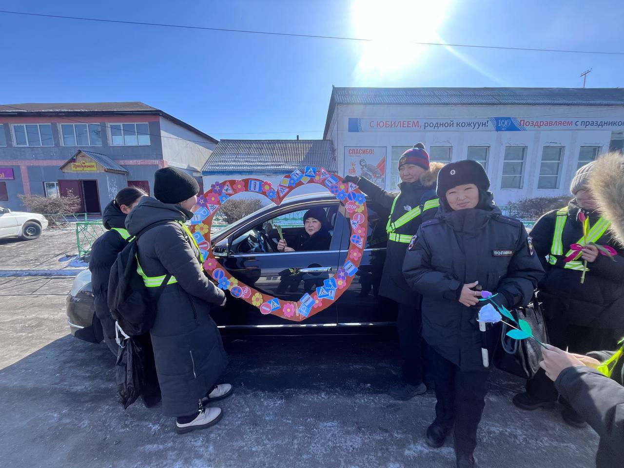 ЮИД и ЮДП классы и автоинспектор провели в селе Кызыл-Мажалык праздничную акцию «С 8 Марта поздравляем, ПДД не нарушаем!»