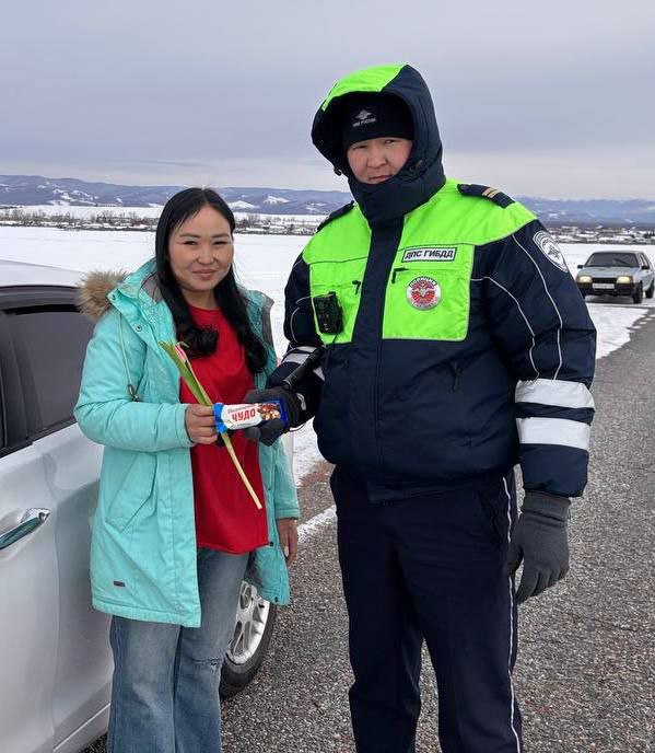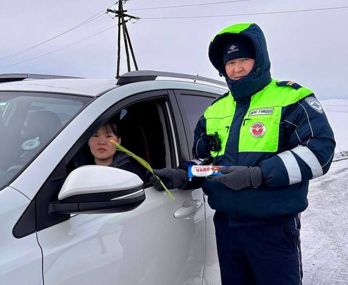 Инспекторы ДПС Госавтоинспекции МО МВД России «Тандинский» вручили тюльпаны, как напоминание о важности соблюдения ПДД в празник весны и красоты