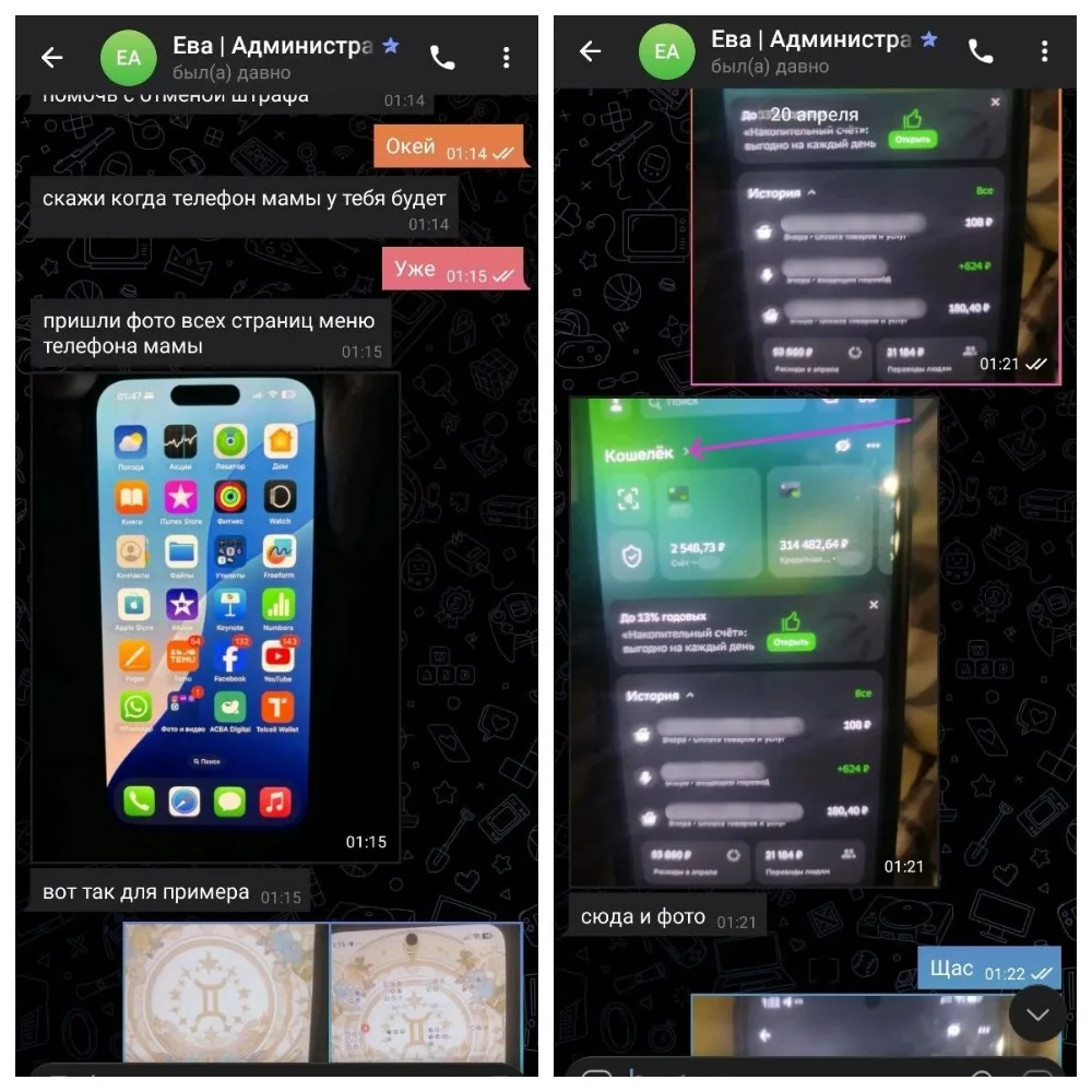 Испугавшись, мальчик стал выполнять указания мошенников, которые «обещали» уладить ситуацию. По их требованию он взял телефон матери, отправил фотографии экрана и получил доступ к банковским приложениям, введя известный ему пароль. В дальнейшем ребенок под диктовку злоумышленников совершил шесть переводов на неизвестные счета на общую сумму более 302 000 рублей.