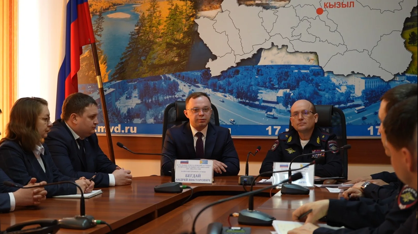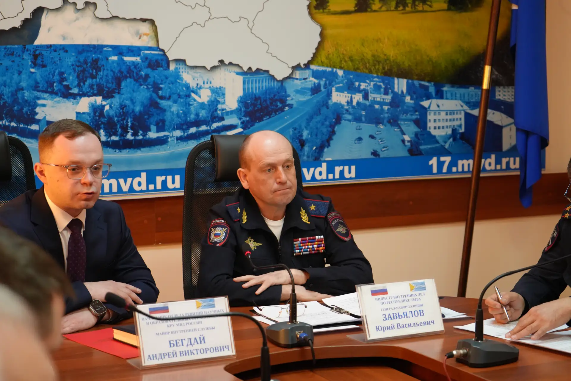Сегодня министр внутренних дел по Республике Тыва генерал-майор полиции Юрий Завьялов совместно с начальником отдела КРУ МВД России майором внутренней службы Андреем Бегдаем провели совещание, на котором были обсуждены результаты проверки.