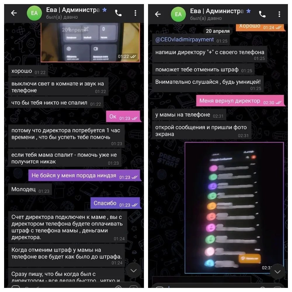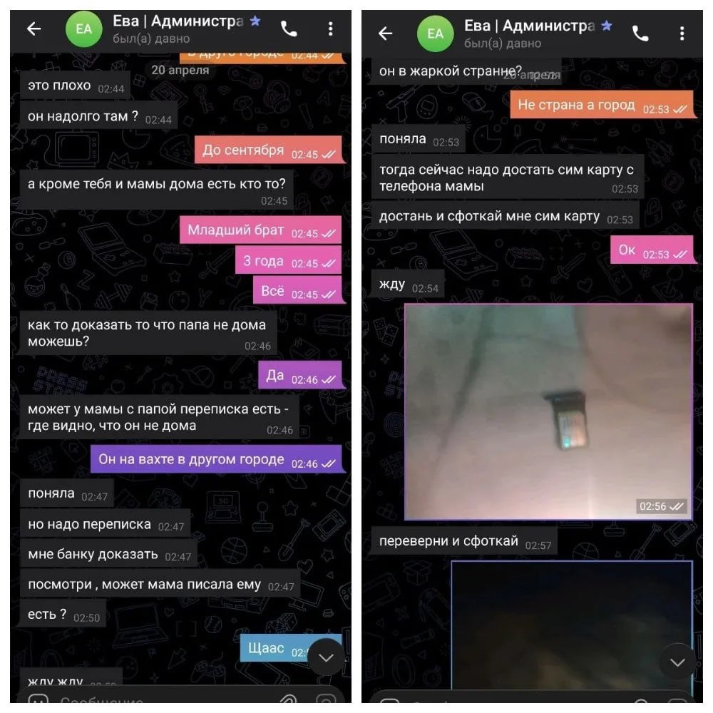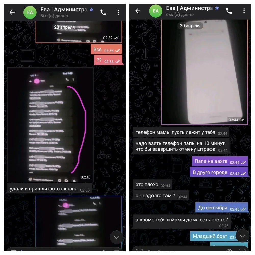 Ребенок получил доступ к телефону матери и под диктовку совершил несколько переводов на сторонние счета. После этого мошенники пытались скрыть следы — требовали удалить сообщения, отключить уведомления банка и даже физически уничтожить сим-карту.