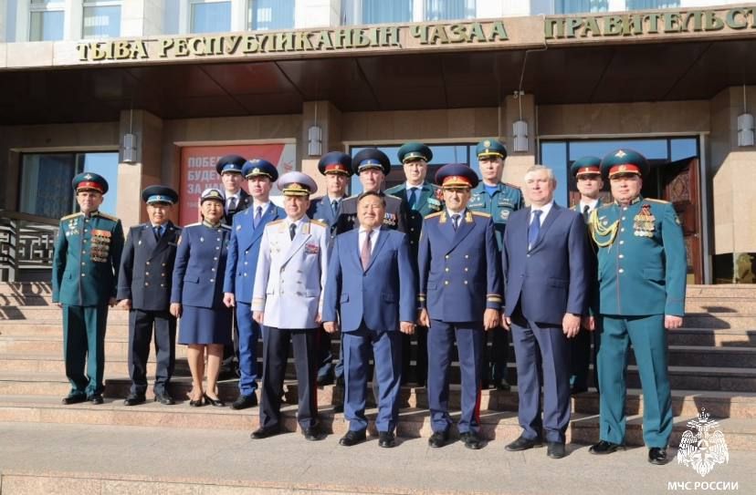 В праздничной церемонии поднятия государственных флагов Российской Федерации и Республики Тыва перед зданием Правительства Тувы участвовали парадные расчёты воинских частей, силовых структур, кадеты Кызылского Президентского кадетского...