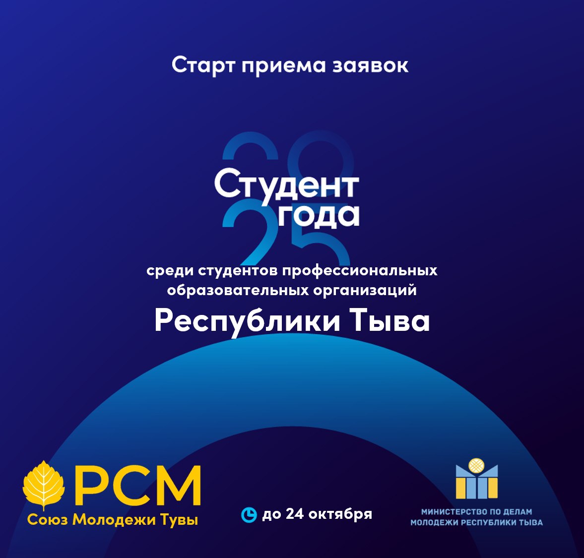 Министерство по делам молодёжи Тувы совместно с Союзом молодежи Тувы объявляют об открытии приёма заявок на региональный этап Национальной премии в области студенческого творчества и общественной деятельности «Студент года – 2025». Премия учреждена с целью выявления и поддержки студентов средних профессиональных образовательных учреждений Тувы, продемонстрировавших выдающиеся достижения в учебной, научной, творческой, спортивной и общественной сферах. Она предоставляет платформу для признания и популяризации высоких результатов студенческой деятельности.