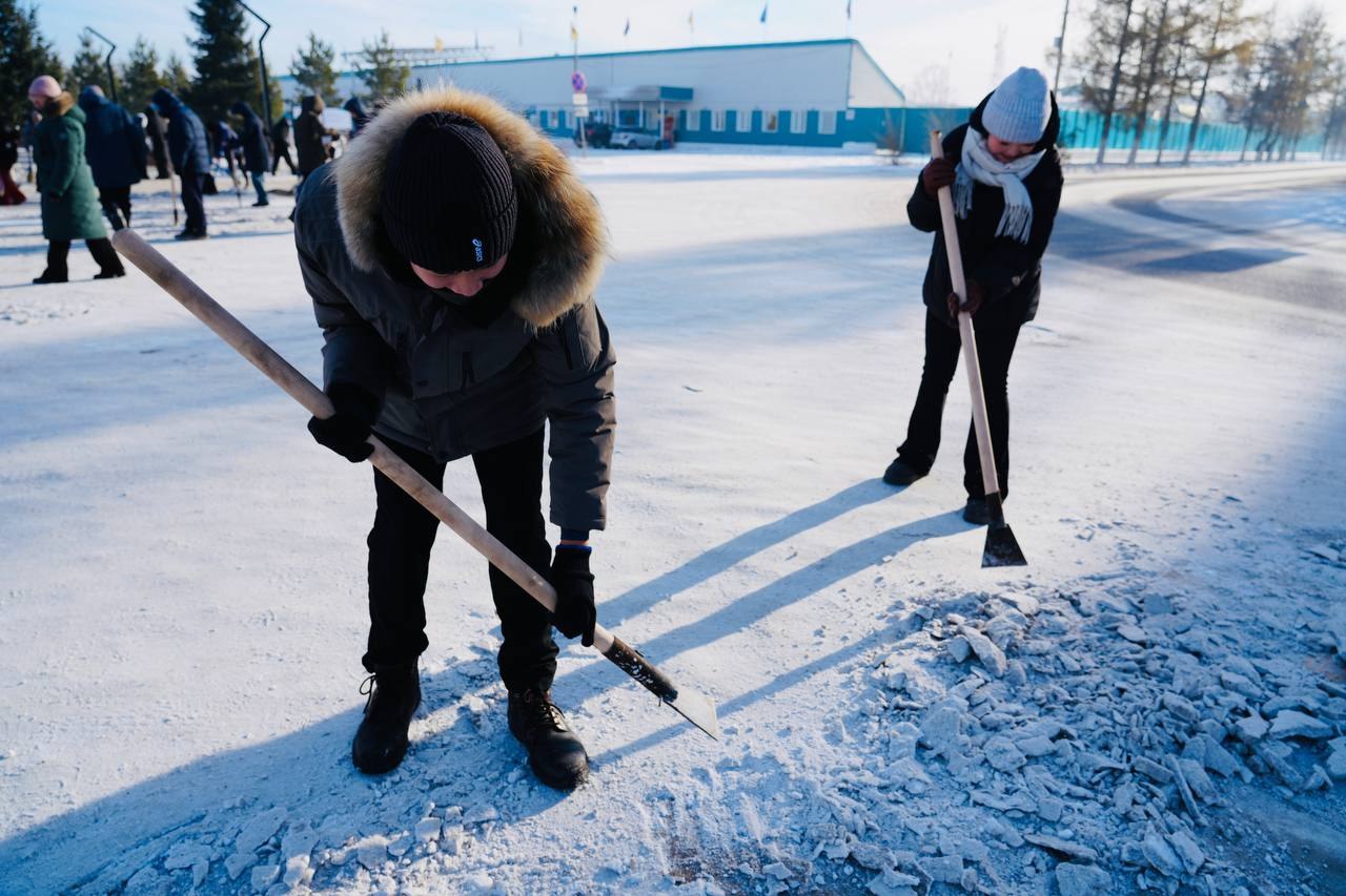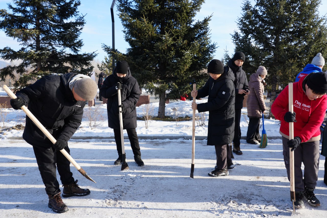 Волонтеры очистили от снега тротуары у мемориала и на прилегающей улице Красных партизан. Участникам акции также были вручены конверты с заданиями на декабрь.