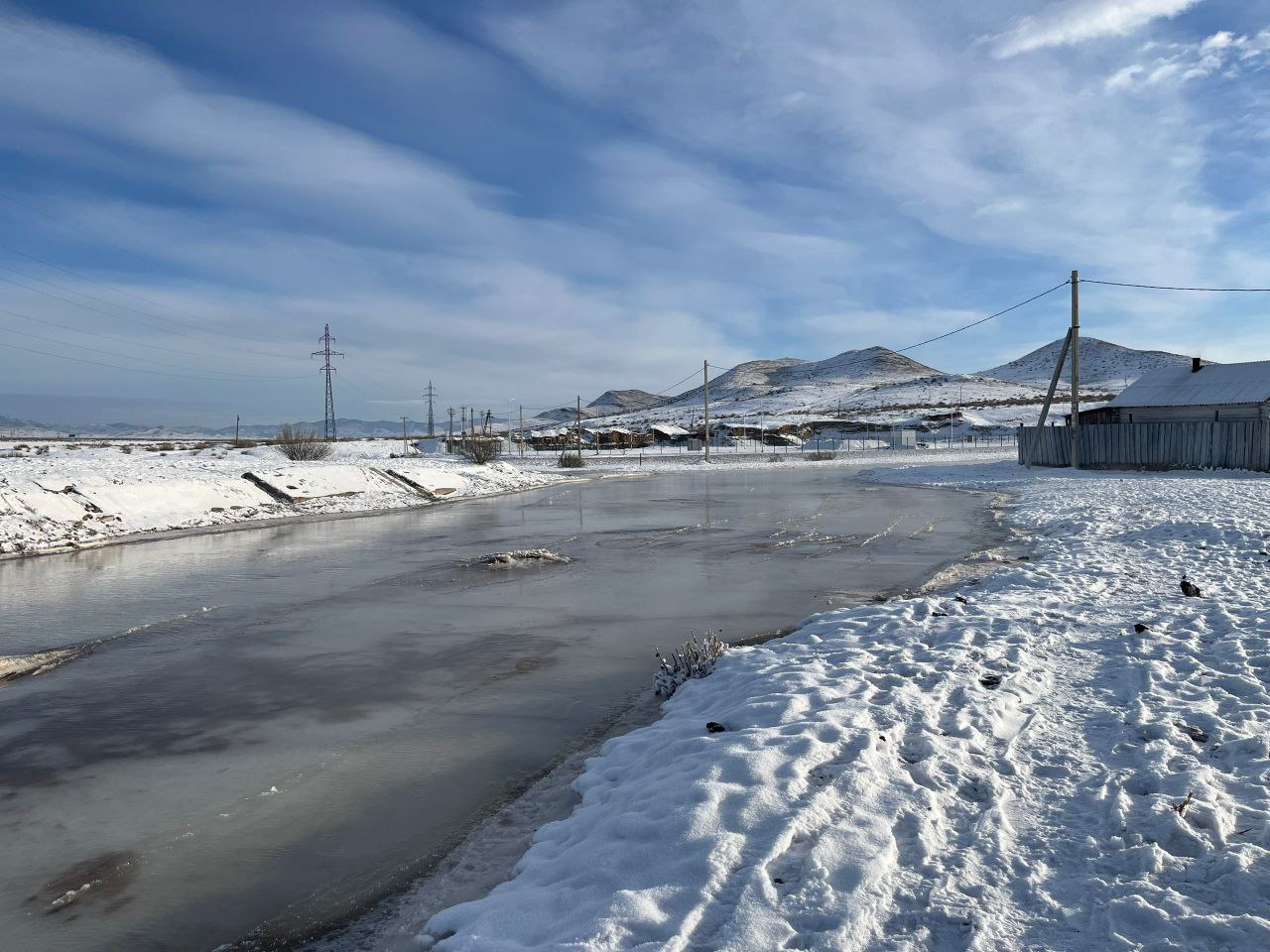 Сообщение о том, что в г. Чадан на улице Нефтебаза произошел выход наледевых вод из протоки реки Чадан поступило от ЕДДС Дзун-Хемчикского района...