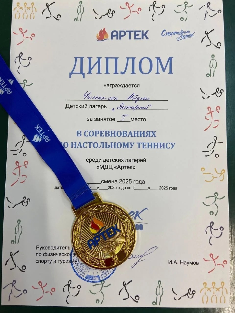 Учащийся Аграрного лицея Республики Тыва имени Народного учителя П.А. Морозова Айдын Чыргал-оол одержал победу на межлагерных соревнованиях по настольному теннису в Международном детском центре «Артек». Десятиклассник сначала выиграл турнир в своём лагере «Янтарный», а затем стал лучшим в финальных состязаниях среди всех артековцев.