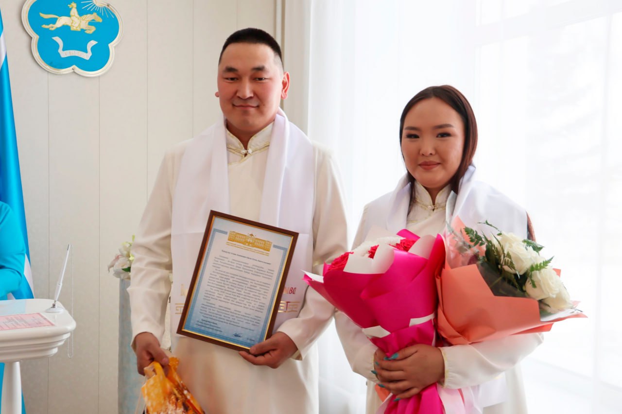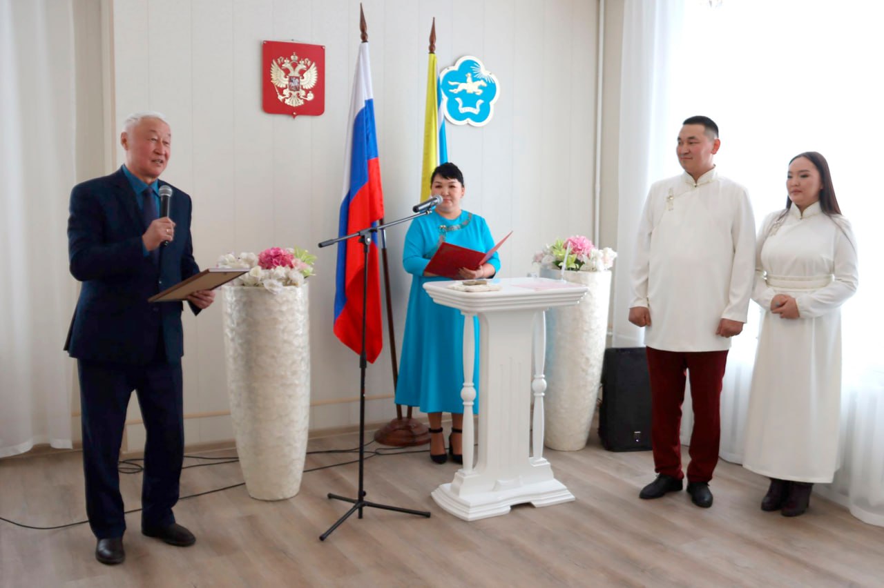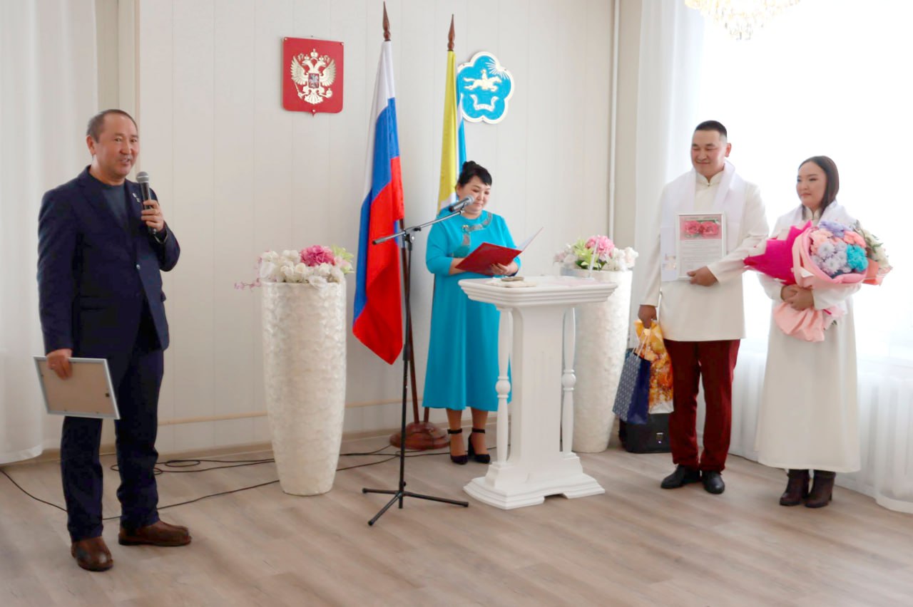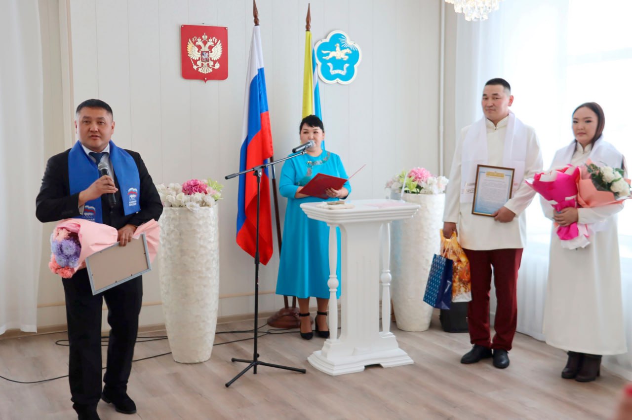 Депутаты Верховного Хурала поздравили первых молодоженов 2026 года Улуг-Хемского района