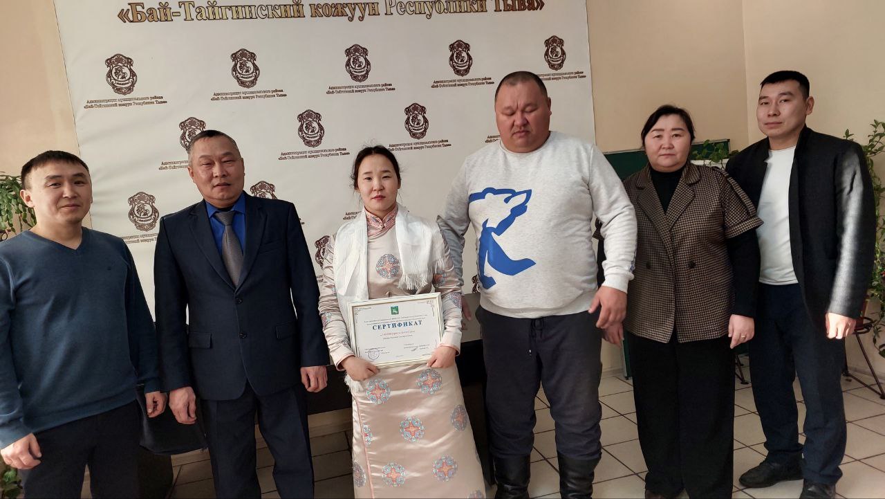 Администрация Бай-Тайги вручила сертификат 15-кратной чемпионке Тувы по женской борьбе Алдынай Даржаа