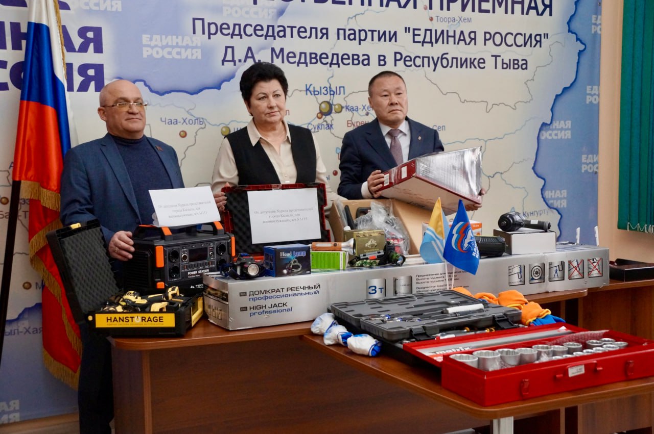 Депутаты Хурала представителей города Кызыла, члены фракции ВПП «ЕДИНАЯ РОССИЯ» в рамках акции «Все для Победы!» передали для автомобильной роты войсковой части 36111 и артиллерийского взвода части 55115 специализированные технические средства, а также средства связи, наборы инструментов, предназначенные для ремонта как легковых, так и тяжелых военных автомобилей.