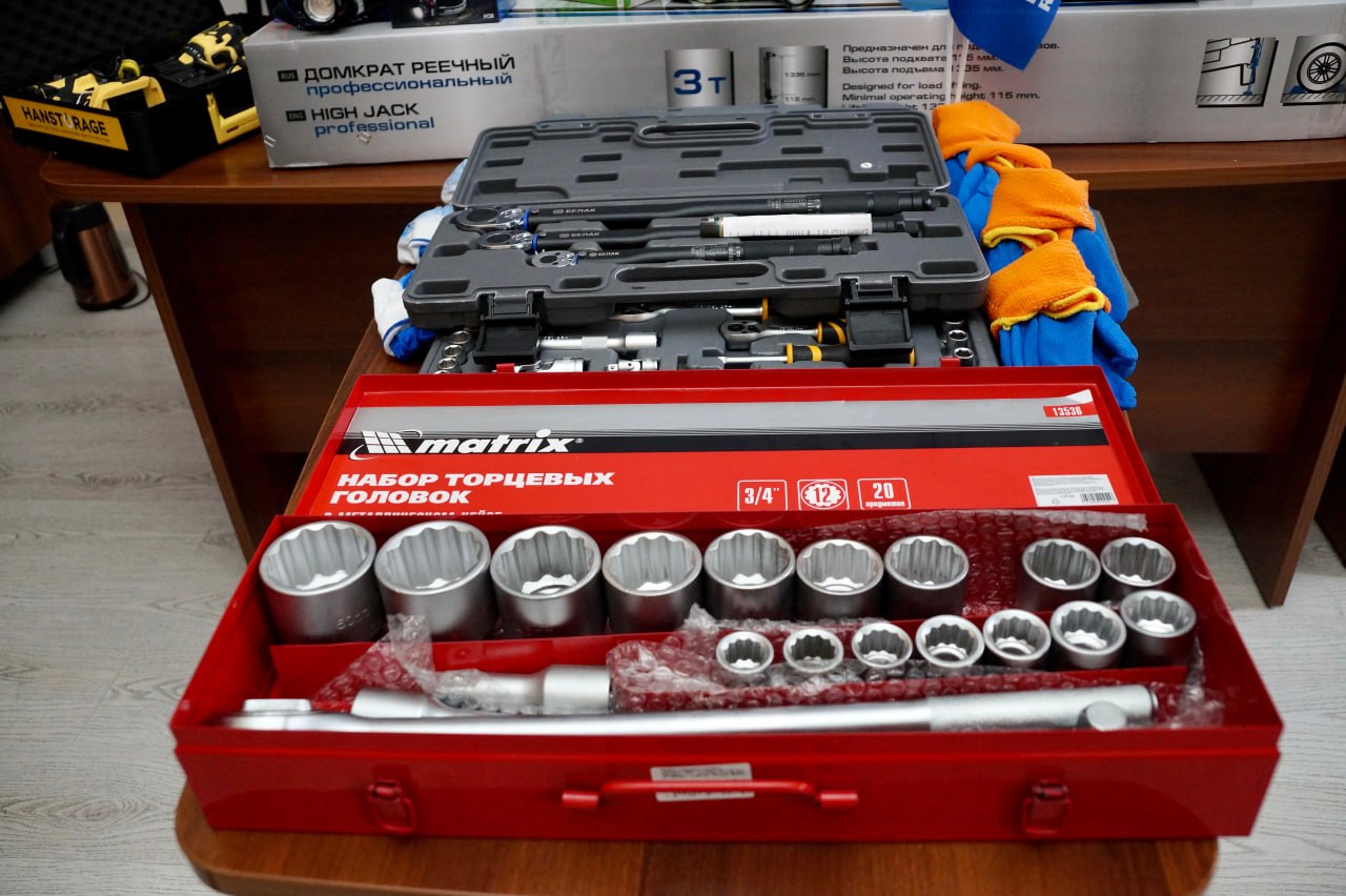 В состав переданных наборов вошли ключи различных типов, домкраты, портативные зарядные устройства, бензопилы и инверторный генератор. Данная помощь является адресной и регулярной по обращению участников специальной военной операции.