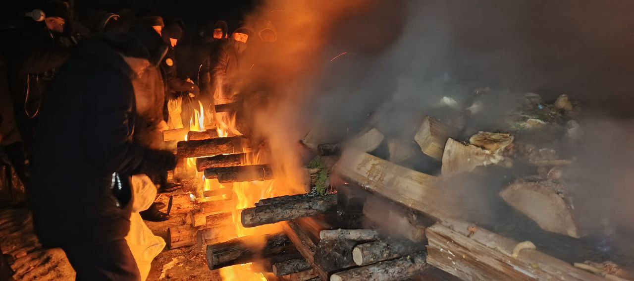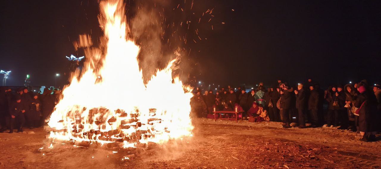 Фото. Сегодня рано утром, в честь празднования Шагаа, около монастыря «Тубтен Шедруб Линг» прошёл обряд Сан-Салыр, в котором традиционно приняли участие представители духовенства и все желающие
