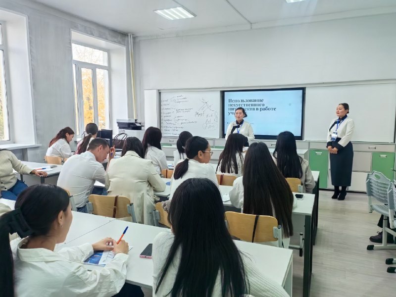 На площадке молодым педагогам продемонстрировали лучшие практики молодых педагогов МБОУ СОШ с. Барлык (региональной стажировочной площадки), связанные с использованием современных цифровых технологий и нейросетей.