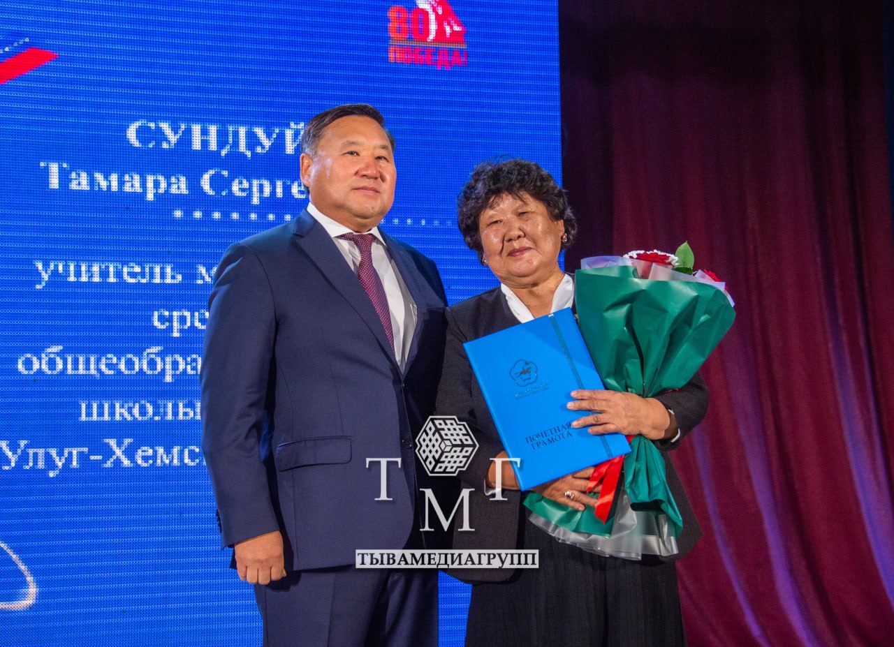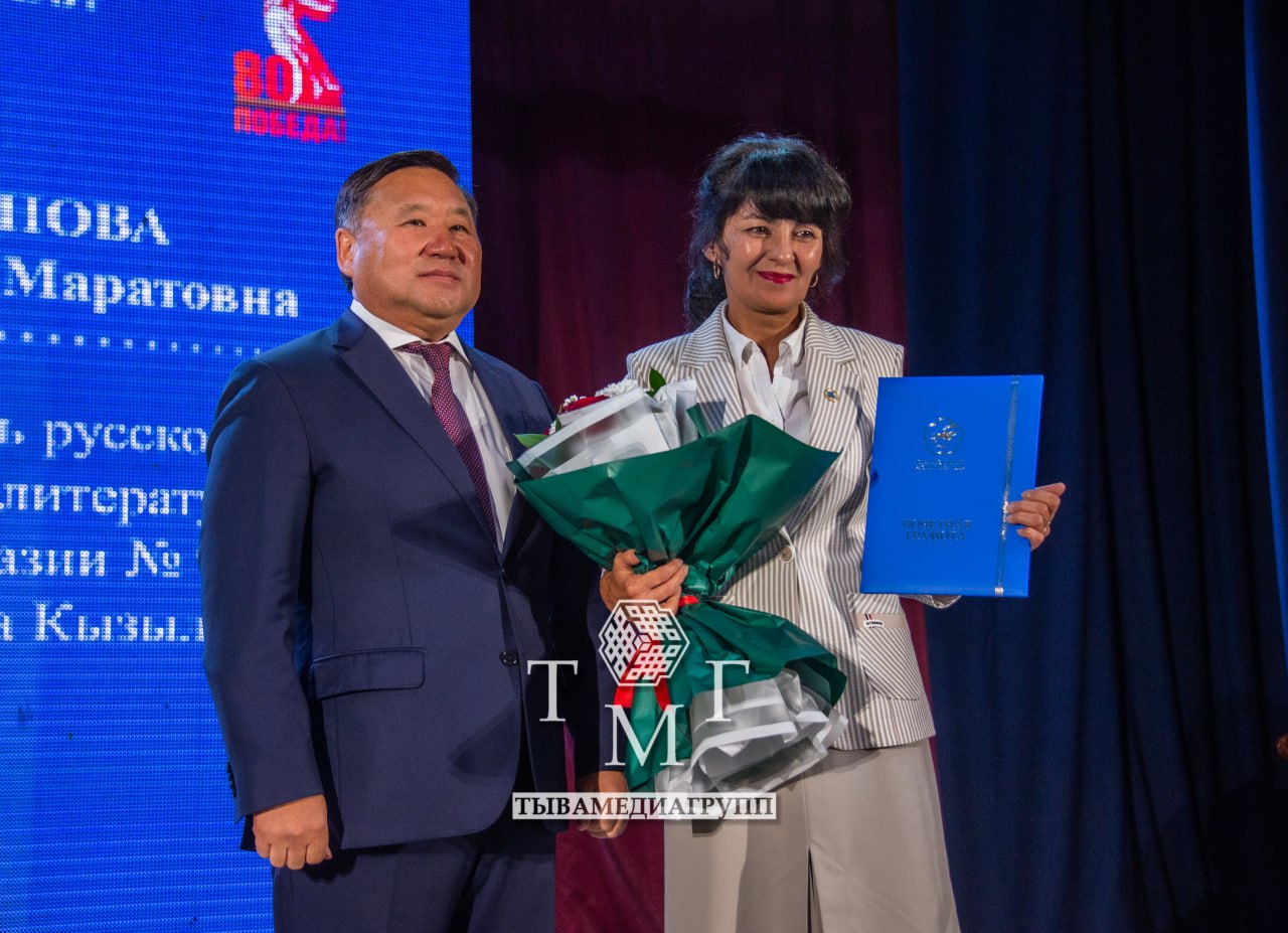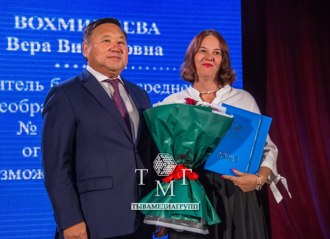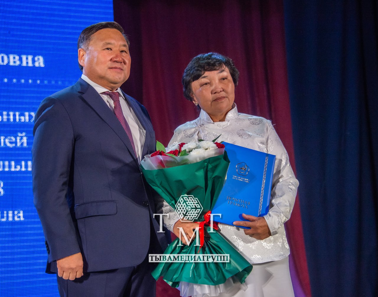 Далее лучшие учителя республики были удостоены наград и премий: премии Президента РФ в размере 200 тысяч рублей, а также премии Главы Республики Тыва — по 100 тысяч рублей — за инновационные подходы и достижения в педагогике.