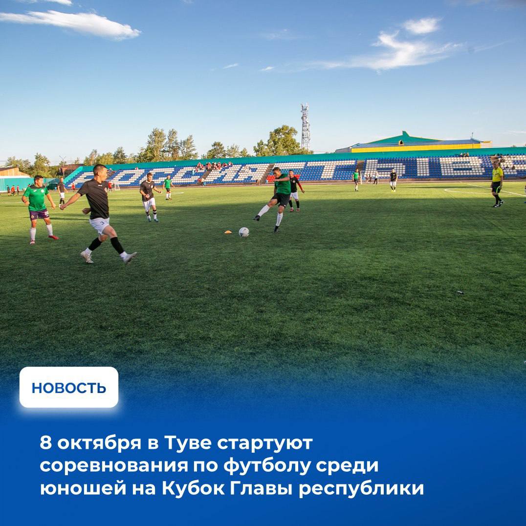 Завтра в столице Тувы начнется Кубок Главы Республики Тыва по футболу среди юношей до 18 лет. Соревнования пройдут на стадионе имени «5-летия Советской Тувы» с 8 по 12 октября. Организаторами выступают Центр спортивной подготовки сборных команд Республики Тыва и региональная федерация футбола.