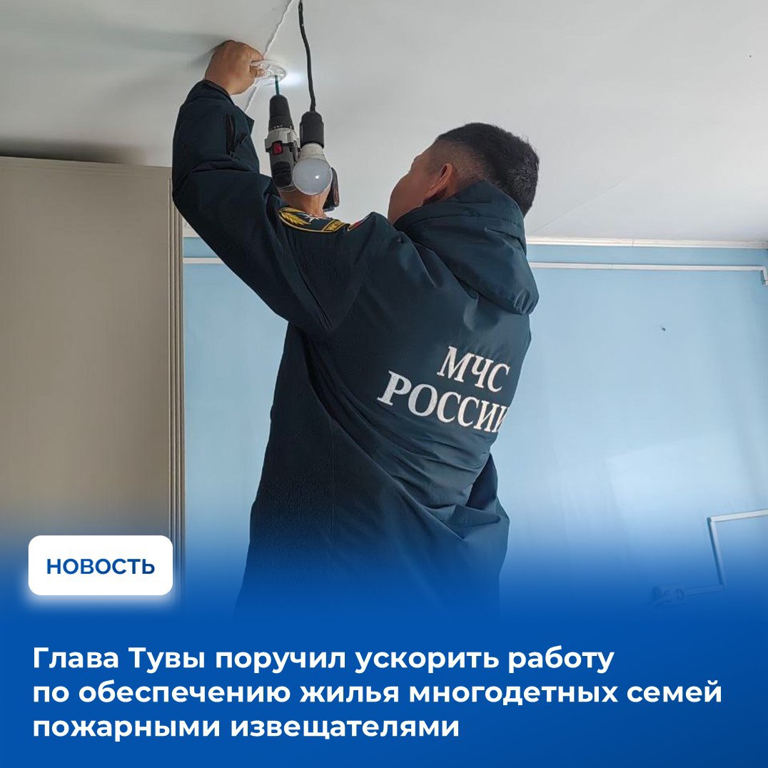 Для профилактики бытовых возгораний в домах с печным отоплением в республике с 2018 года, в том числе, применяют бесплатную установку дымоизвещателей для многодетных семей. Сегодня, 13 октября, на еженедельном аппаратном совещании Глава Тувы Владислав Ховалыг поручил ответственным ведомствам и муниципальным образованиям ускорить данную работу.