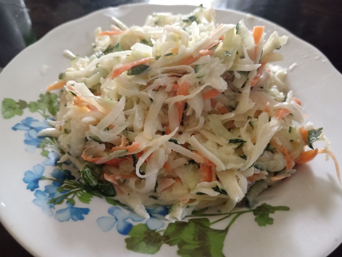 Приготовление начинается с основного ингредиента — репы. Её необходимо очистить и натереть на крупной терке. Мелкие терки придадут салату необычный вид. Огурец и морковь также натираются, причем молодая морковь с грядки особенно вкусна. Сочетание свежести огурца и хрусткости репы дарит освежающий вкус, а добавление моркови усиливает цветовую палитру.