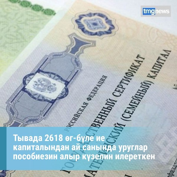 Россияны Социал фондузуну Тывада салбыры 2025 чылды баштайгы сес айларында ажыл-чорудулгазыны дугайында республиканы чазаанче киирген отчедунда ие капиталыны акша-хрегизин ажыглааныны дугайында медээлерни айыткан. Ие капиталы – Россияны г-блелеринге «г-бле» национал тлевилел кселдези-биле боттандырган крне деткимчези болур.