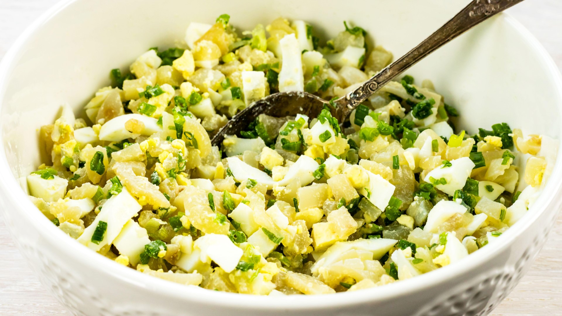 В СССР этот салат с кальмаром был одним из любимых, но сейчас о блюде незаслуженно забыли. А ведь оно здорово выручает, когда хочется чего-то вкусненького, но при этом лень долго стоять у плиты. Понадобятся всего 3 продукта, немного майонеза и всего 15 минут вашего времени.