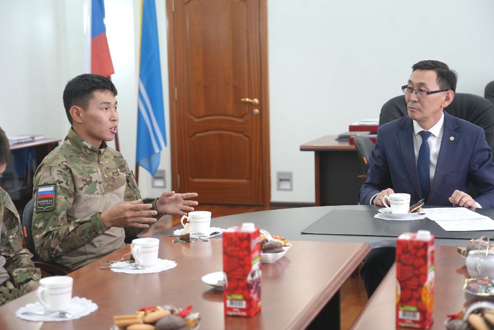 Заместитель председателя Правительства Республики Тыва Орлан Сарыглар провел встречу с командой «Орлы 17» Тувинского кадетского корпуса. В беседе участвовали председатель Совета регионального отделения «Движения первых» Эртине Куулар и наставник команды, педагог Регина Донгак.