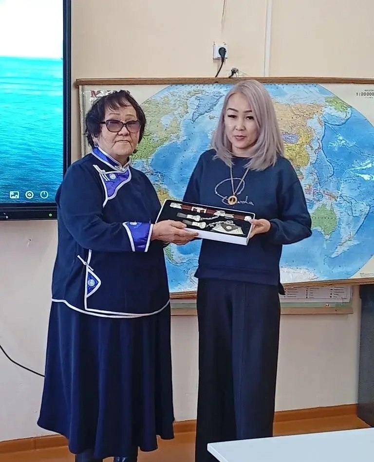 Сарыг-Септи С. К. Тока аттыг 2 дугаар школазыны тыва дыл башкызы С.М. Минчит-оол гге делгеп салыр кылдыр нелиг, чараш белекти снээн.