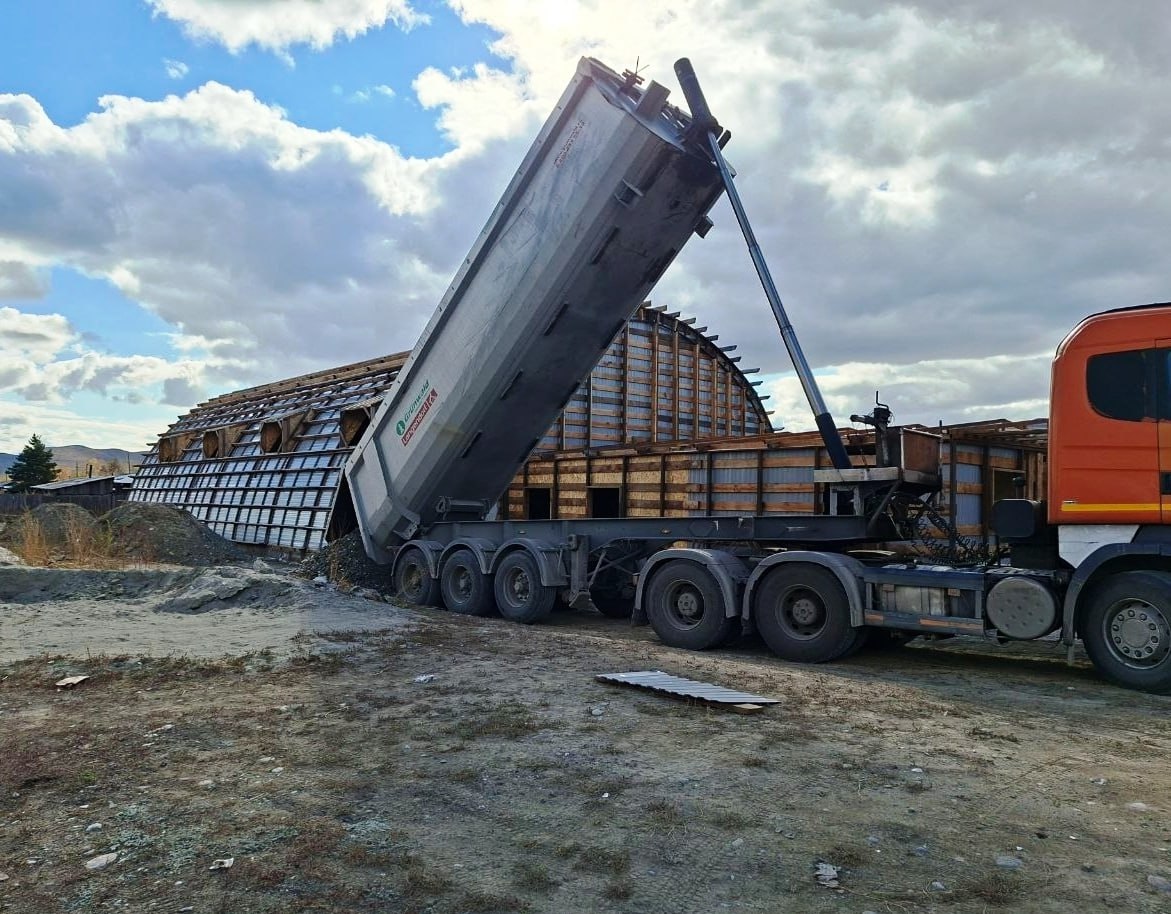 Сайгарлыкчы спорт залыны девискээрин долгандыр дескилээринге херек ш аар чък (90 тонна) автомашина сайлыг довурак-биле деткикчилээн.