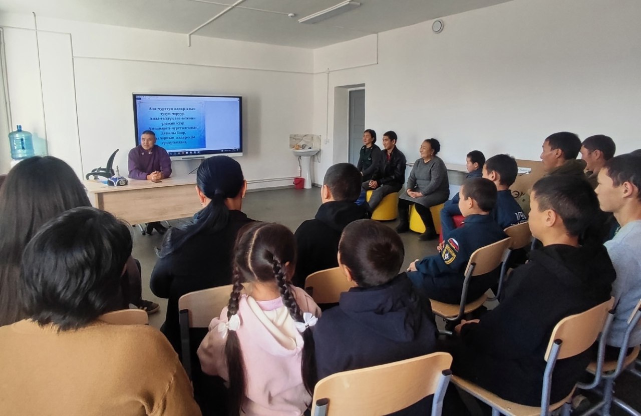 Аксы-Барлык школазынга “Тевекти кчтени” деп атты эдилекчизи Отчугаш Хомушку реникчилерге болгаш адаларга солун ужуражылганы эрттиргенин редилге чери дынаткан.