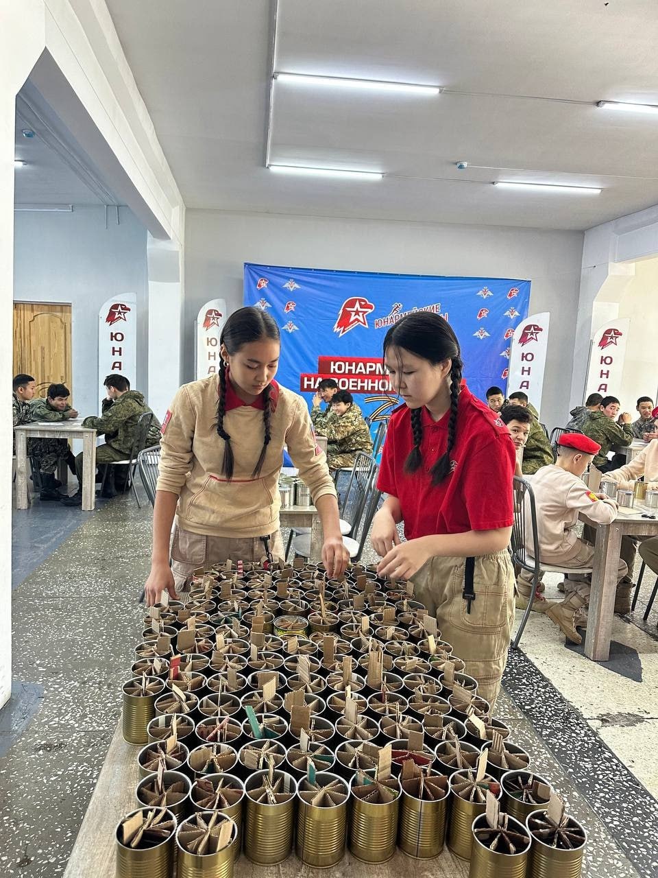 В рамках акций «Блиндажная свеча» и «Письмо солдату» юнармейцы школы №1 г. Кызыла и курсанты УМЦ «Авангард» изготовили накануне около 500 специальных свечей под руководством своего наставника, советника директора по воспитанию Наиры Балян. Блиндажные свечи – это горелки, сделанные из жестяных банок, расплавленного воска и плотного картона. Они могут согреть долгие часы без перерыва, а силы огня хватит для приготовления пищи. Одновременно ребята написали письма поддержки и благодарности защитникам Родины.