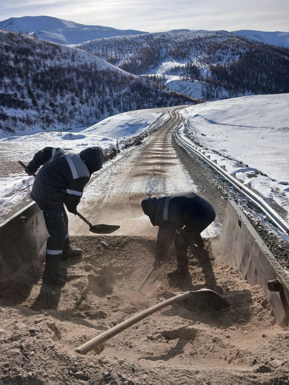 В связи с ухудшением погодных условий в отдельных районах Тувы, где на этой неделе прошли снегопады и отмечались метели, дорожные службы переведены на усиленный режим работы. Для обеспечения безопасности и приведения трасс в нормативное состояние на региональных и федеральных дорогах круглосуточно работают свыше 150 единиц дорожной техники.
