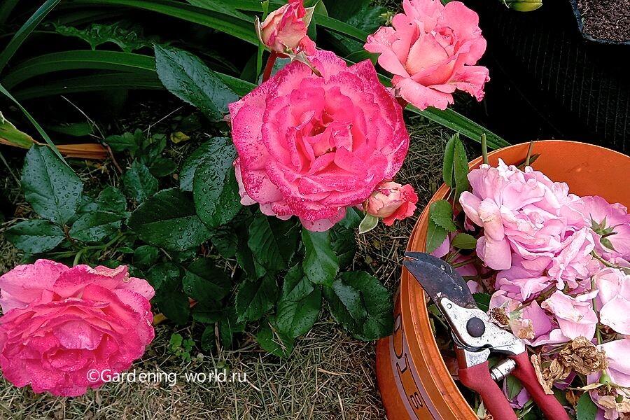 После обрезки рекомендуется обильно полить розы и обработать кусты фунгицидом для предотвращения заболеваний. Простые удобрения с высоким содержанием фосфора и калия также помогут ускорить восстановление растений после этой процедуры. Если нет готовых средств, вполне подойдут народные методы — например, зольный раствор, приготовленный из золы и воды.
