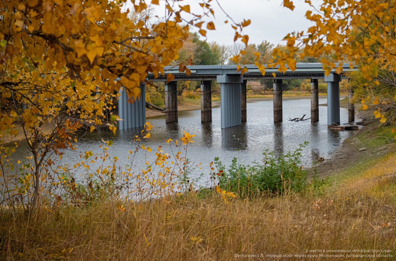 По итогам отбора победителями конкурса в номинации «Инфраструктура» стали Алексей Сметкин из Пермского края (1 место) за кадр пруда в селе Калинино Пермского края; Альберт Куулар из пгт Каа-Хем за фото реки Енисей на закате в Красноярском крае (2 место); Лилия Филоненко из Астрахани за съемку ерика Молочный и нового моста через него (3 место).