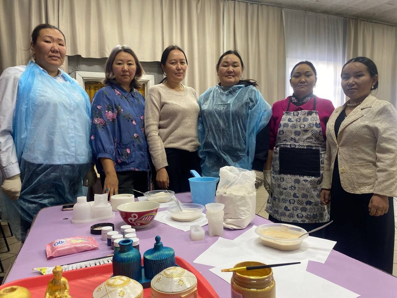 На прошлой неделе мастерицы из села Баян-Тала научили участниц создавать гипсовые сувениры, а умелицы из села Хондергей поделились секретами работы с эпоксидной смолой. Впереди, 24 и 25 ноября, всех желающих ждет мастер-класс по кройке и шитью национальной одежды "тыва тон".