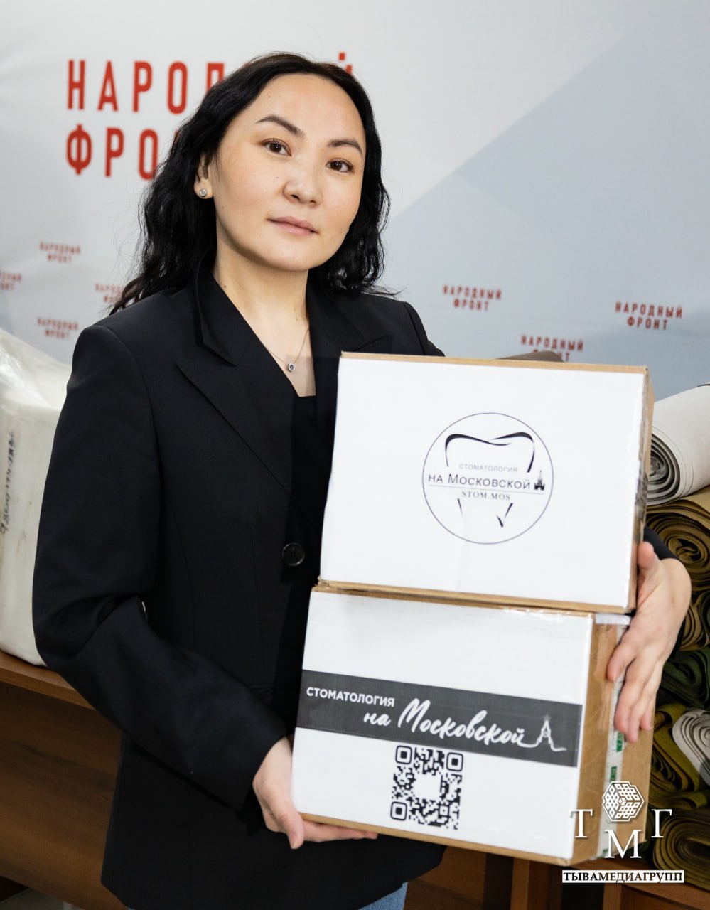 Руководитель клиники Надежда Сарыглар во время передачи медикаментов рассказала о том, что они активно поддерживают наших защитников.