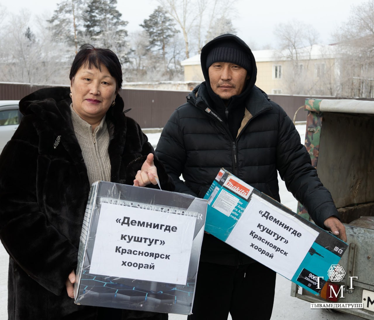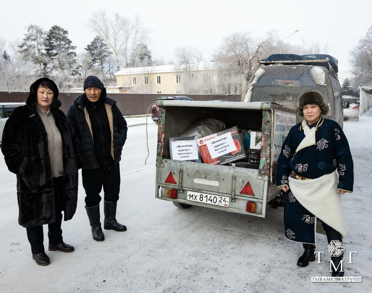Не остались в стороне и жители Красноярского края, активные участники волонтерского пункта «Демнигде куштуг» (Вместе мы сила). Руководитель организации Чойгана Монгуш вместе с коллегами передали более 20 маскировочных сетей, четыре генератора, тепловые пушки, портативные зарядки и восемь накидок.