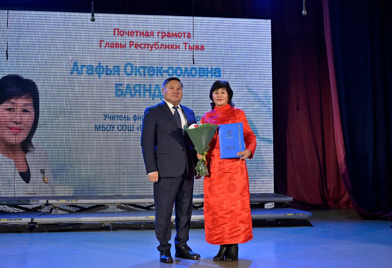 Тыва Республиканы Баштыыны Хндлел бижиинге Кызылды 5 дугаар гимназиязыны кш-культура башкызы Агафья Баяндай тлептиг болган.
