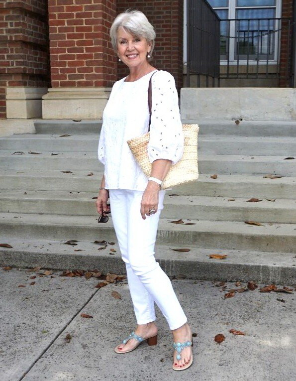 Первое, что стоит отметить: чисто белый цвет не рекомендуется для тех, кто хочет выглядеть моложе. Этот цвет требует идеального макияжа, иначе он может подчеркнуть красноту кожи, а морщины станут более заметными. Кроме того, белоснежные зубы на фоне такого цвета могут выглядеть желтоватыми, а неловкие проявления возраста на шее и декольте станут очевидными.