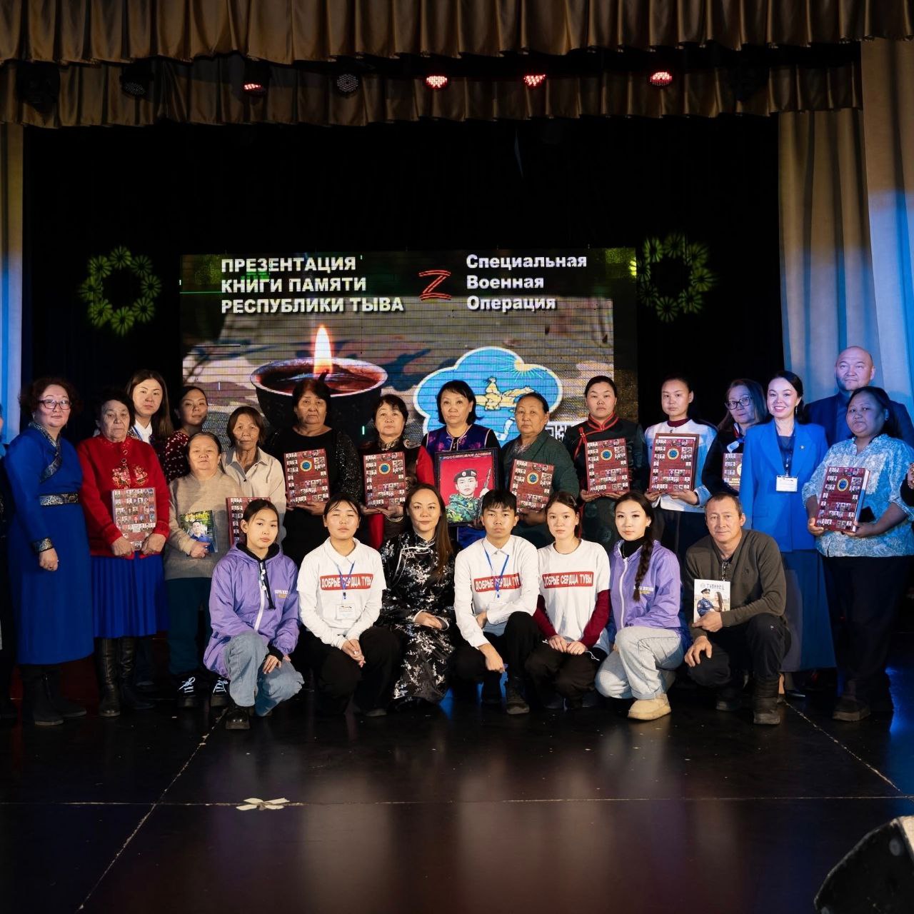 Представители молодежного движения «Добрые Сердца Тувы», среди которых студенты Тувинского политехнического техникума и воспитанники Республиканской школы-интерната, активно участвовали в организации мероприятия, посвященного презентации книги памяти проекта «Подвиги воинов Тувы. Вечная память!».